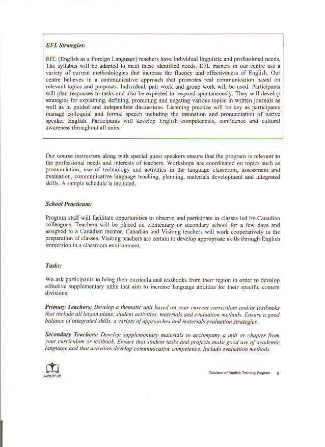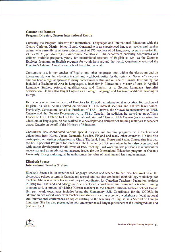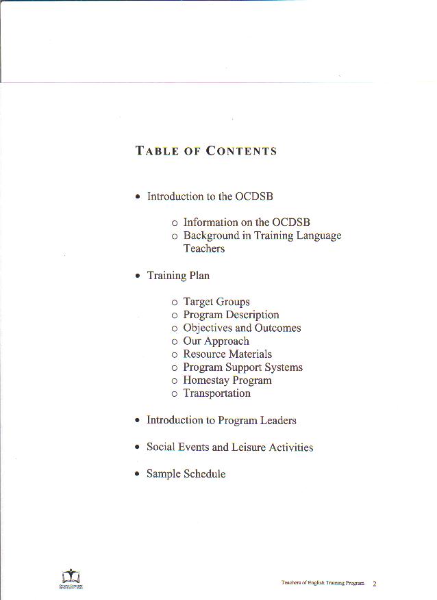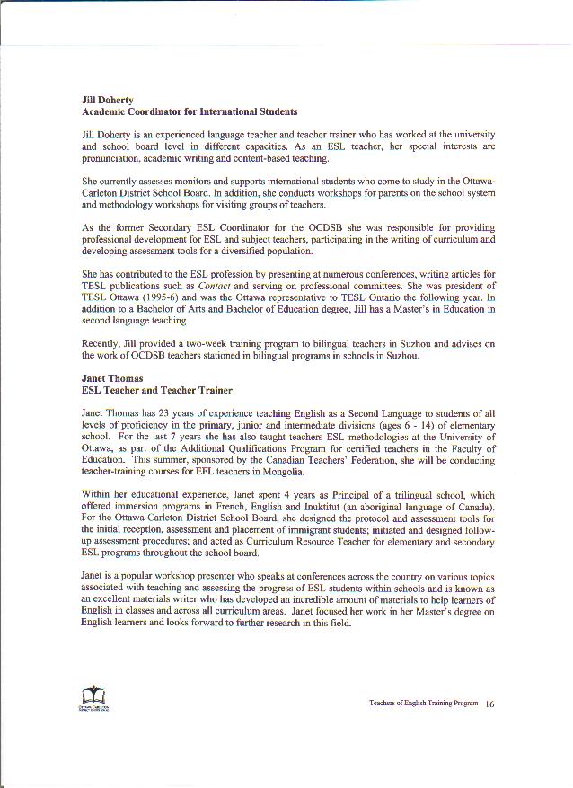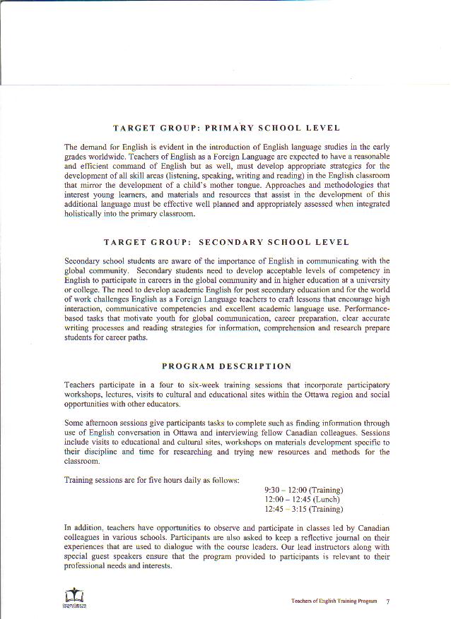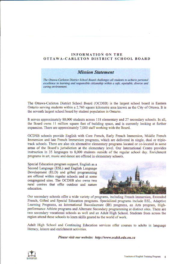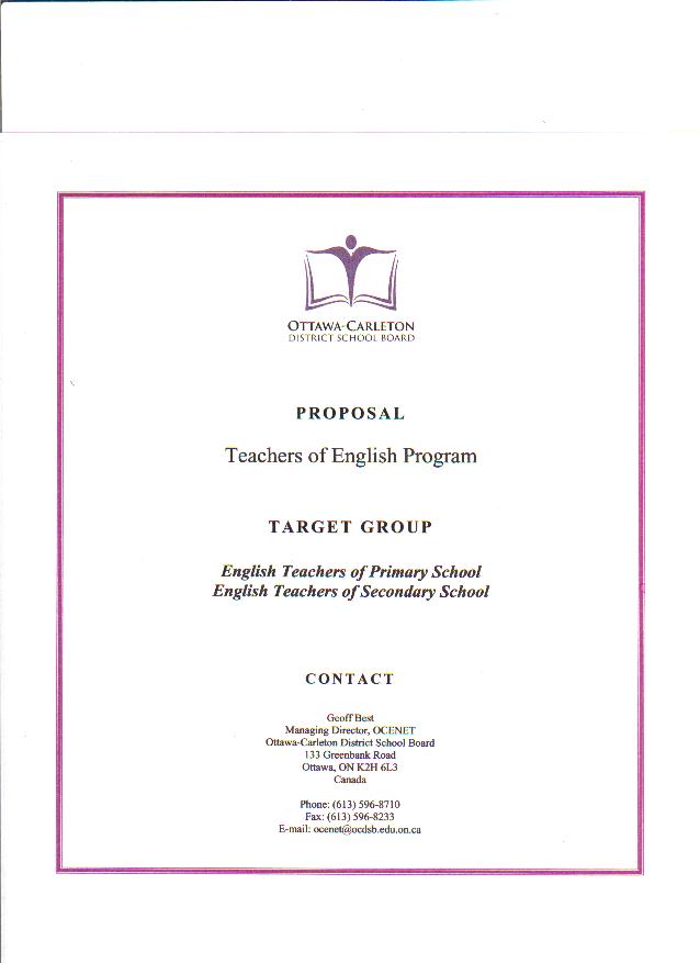 | English teachers of Primary and Secondary schools interested in English Teacher Program from the Ottawa-Carleton District School Board please click the links below to look over the proposal: Page 1 Page 2 Page 3 Page 4 Page 5 Page 6 Page 7 Page 8 Page 9 Page 10 Page 11 Page 12 Page 13 Page 14 Page 15 Page 16 Page 17 Page 18 Page 19 Page 20 Page 21 Page 22 Page 23 Page 24 |